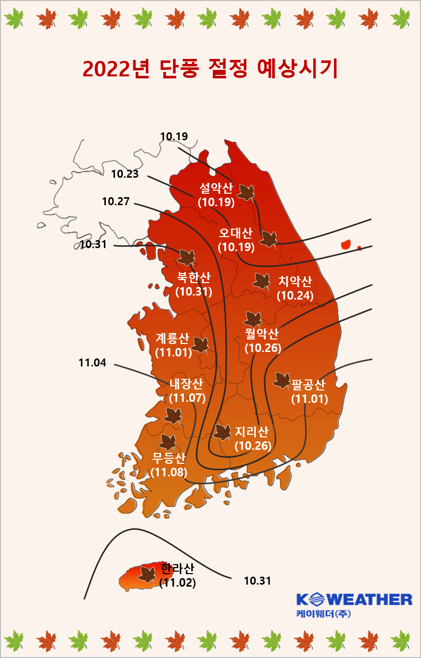 1. 2022년 첫 단풍 및 단풍 절정 시기 예상